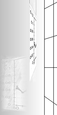 "Science" - Ebene 5 : Diese Ebene setzt im vorderen mehrstöckig frei durchgehenden Teil des Foyers die Ebene 3 fort, bzw. führt auf sie zu. Sie besteht ebenfalls aus verschiedenen AkrylGlasPlatten (ca. 3 - 4 Stück in verschiedenen Höhen mit FolienBeschriftung), die hier jedoch frei im Raum hängen, oder der GlasFront direkt hinterlegt werden (geplante Höhe jeweils ca. 1,5 bis 2,5 Meter, Breite ca. 0,5 - 1 Meter). Aufgebracht sind FormelZitate aus der wissenschaftlichen Forschung. Durch das von SüdOst einfallende Licht werden die Motive der Beschriftung als Schatten an die seitlichen Wände geworfen, wo sie mit dem Sonnenstand weiterwandern bzw. wieder verschwinden. Dadurch soll, ausser der VerbindungsFunktion zur HauptArbeit auch der UmweltEinfluss symbolisiert werden, der einen gewissen Faktor bei der Entstehung von MessUngenauigkeiten darstellt. (rechts)